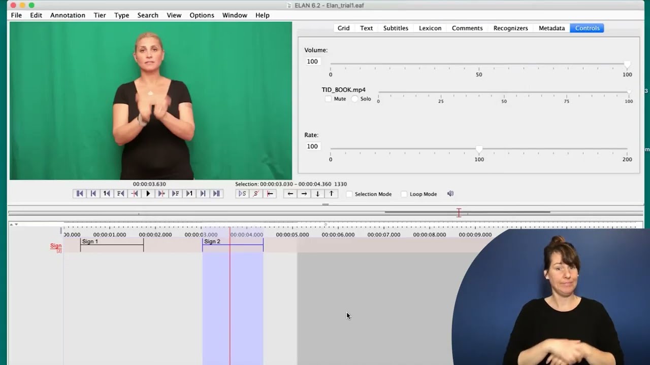 In these videos, the training is given in English (with English subtitles) by Beyza Sumer (University of Amsterdam) and in the Sign Language of the Netherlands (NGT) by Ellen Nauta (University of Amsterdam). This project has been funded by a CLARIAH teaching fellowship (2021) and supported by University of Amsterdam. We hope to gain further funding to make these videos available in other signed and spoken languages in the future as well as providing more videos on the advanced uses of ELAN.
